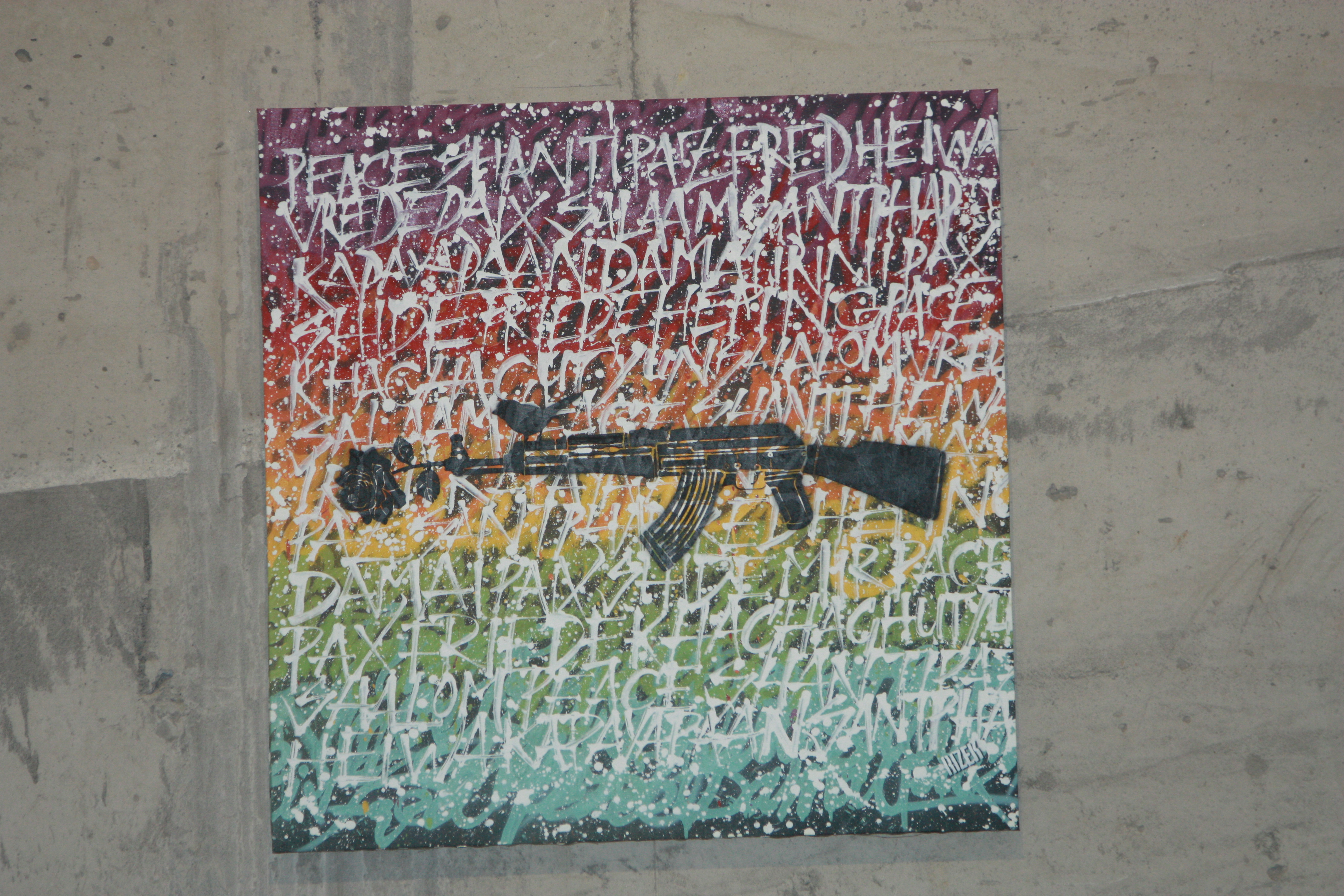 In this exhibit, artists are taking a closer look at the contradictions found in their contemporary environment. Some of the artists have taken inspiration from the metropolis, a place of growth and development, but also friction and at times disharmony, as seen in the works of Noumeda Carbone, RIZEK, navereY, Artak Gevorkyan, Audio Visual Circle, and Serge Navasardyan. As Street Artists, the urban environment is usually their canvas of choice, and so for this exhibit some of their works can be found inside our gallery space while others are dispersed throughout the city.